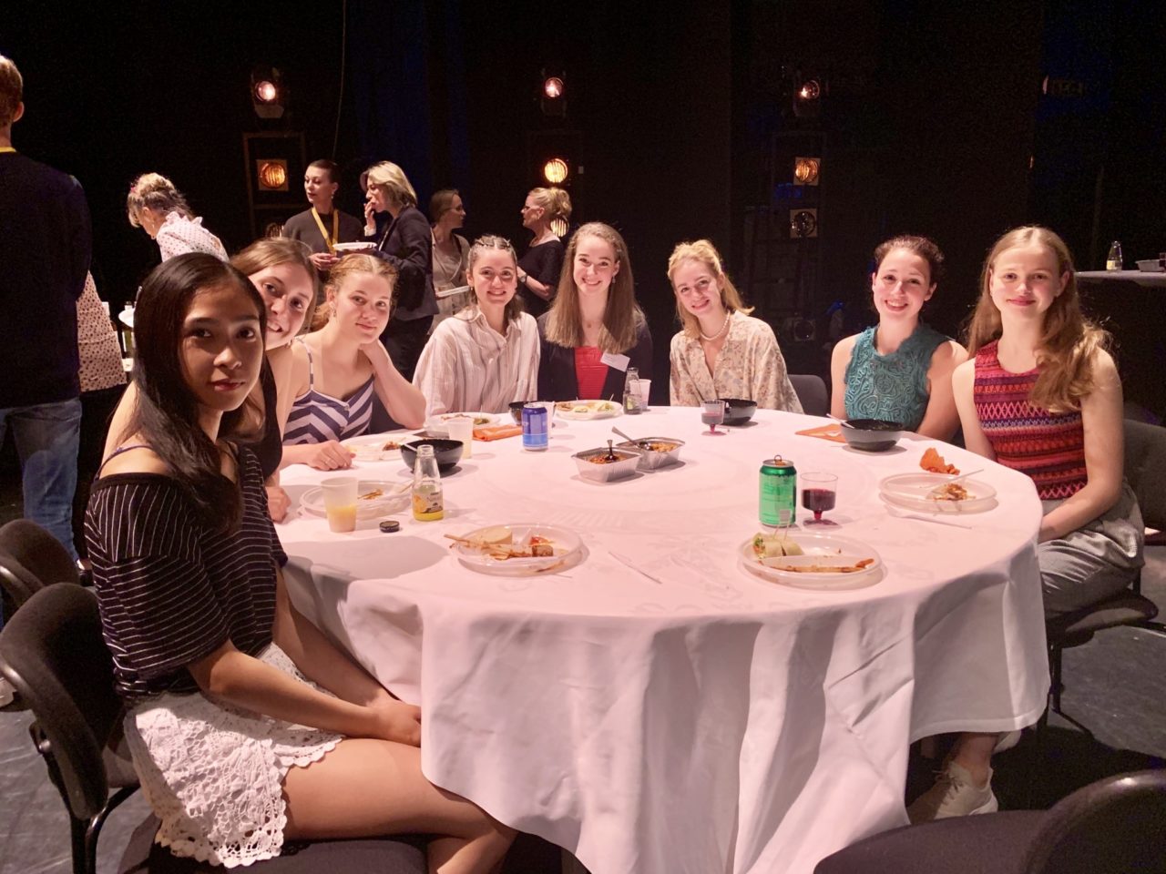 The evening ended with a cosy dinner at the Kees van Baarenzaal (Photo: Student Expert Rosie Mackley (centre) with a group of Bachelor Dance students).