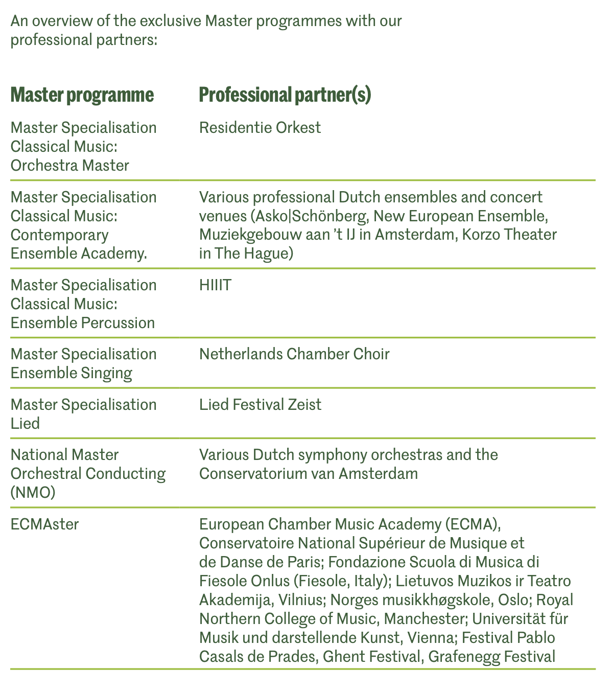 Een overzicht van de exclusieve Masterprogramma's met onze professionele partners